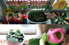 В нашем детском саду № 6 «Аленушка» каждую весну все группы детского сада оформляют свой мини огород на окошки. Основная задача – развивать познавательный интерес, формировать навыки экспериментирования; развивать чувство ответственности за порученное дело. В каждой группе – свой дизайн огорода на подоконнике: где-то среди горшков с рассадой извивается плетень с нарядными подсолнухами, кто-то отправил «пастись» в зелёную зону игрушечных коровок с овечками, создали горшки для каждой луковки, Здесь есть все, что должно быть в настоящем огороде: домик, забор, колодец с ведерком для полива, огородное пугало. Педагоги сумели превратить маленький огородик на окне в сказочную страну, заселенную знакомыми сказочными героями и это место стало самым «волшебным» в группе, и от него было просто невозможно отвести глаз.