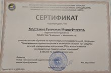 Наш педагог МБДОУ №6 «Аленушка» успешно прошла обучение по полилингвальной образовательной программе «Практическое владение татарским и английским языками как средство речевой коммуникации воспитателя ДОУ с использованием инновационных педагогических технологий» в Мензелинском педагогическом колледже имени Мусы Джалиля. Поздравляем!