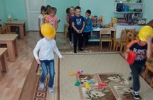 Воспитатель провела разминку под песню «Танец маленьких утят».Дети с удовольствием участвовали в разных эстафетах : «Кто быстрее пройдёт по скамейке», «Быстрые ноги» . «Наездники» .Детям понравилось соревноваться. Победила дружба.