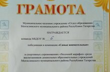 В спортивных соревнованиях «Весенний марафон» среди воспитанников доу Мензелинского муниципального района РТ наши воспитанники победили в номинации «Самые внимательные».Молодцы! Поздравляем! Желаем дальнейших успехов.