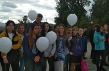Студенты 104 группы ГАПОУ « Мензелинское медицинское училище» приняли участие в митинге, посвященном 15- летию со дня трагедии в Беслане. Память погибших детей и взрослых в этой страшной трагедии была почтена минутой молчания, а в небо устремились воздушные белые шары как символ безвинных душ….