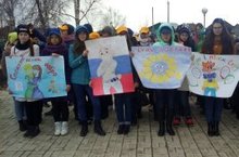 Студенты первого курса медицинского училища присоединились с плакатами к "Маршу добра"