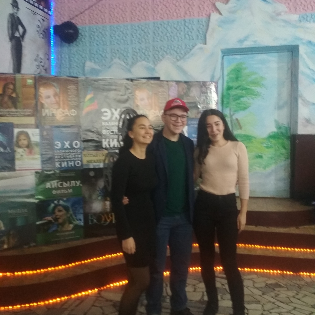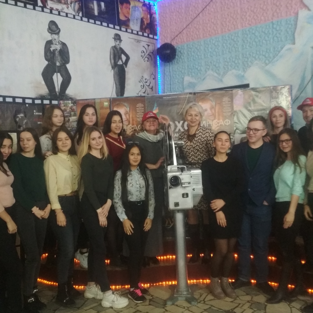 Опубликовано: 15.11.2019Студенты 103 Б группы посетили кинотеатр « Победа», где в рамках кинофестиваля татарского кино транслировалась интереснейшая комедия «Инсаф». Ценным на мероприятии был не только фильм, но и встреча с главным героем фильма, продюсером и главным оператором.