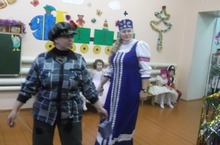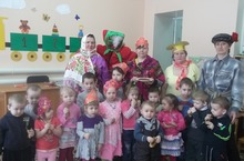 Гости на празднике: Скоморох "Ваня", Скоморошина "Маруся", " Блин"