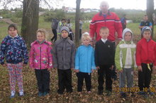 Мы в парке стометровку.Учащиеся, педагоги, сотрудники и члены профсоюза все вышли на осенний кросс.