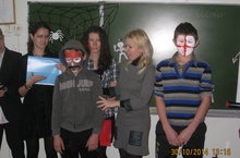 В нашей школе прошёл праздник " Хэллоуин"(учитель Нуриева Г.Ф) Отмечая праздник, учащиеся переодевались в различные костюмы на Хэллоуин. Наиболее популярны костюмы персонажей уже известных фильмов, такие как мумия, ведьма и другие. Черный и оранжевый цвета преобладают в современном убранстве Хэллоуина.