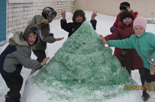 В нашей школе учащиеся к новогодним праздникам слепили снежные фигуры.