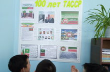 Отряд профилактики правонарушений "ПРОФИ" совместно с отрядом "SMS" - дети оформили стенд к 100 – летию ТАССР