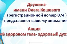 Мероприятия в рамках акции « В здоровом теле- здоровый дух», будут проходить в 13:00 в спортивном залеПресс-релиз подготовлен председателем совета дружины имени Олега Кошевого Бубековой Кристиной