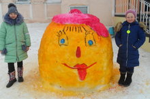 Учащиеся школы вместе с классными руководителями украшают территорию школы снежными фигурами.