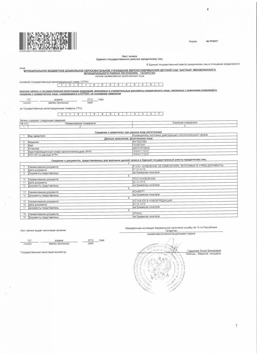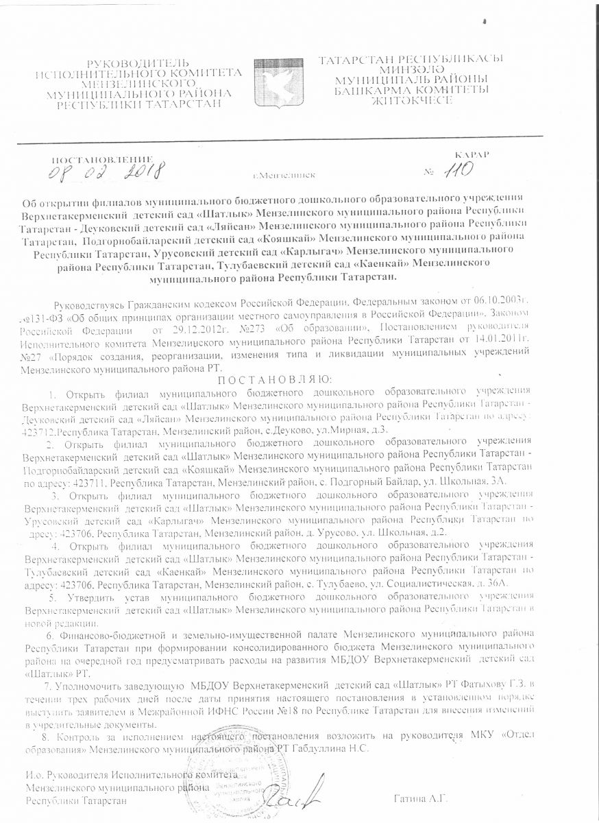 Филиал МБДОУ Верхнетакерменский детский сад "Шатлык" - МБДОУ Подгорнобайларский детский сад "Кояшкай" Муниципального района Республики Татарстан. / Татарстан Республикасы Минзәлә муниципаль районы Югары Тәкермән "Шатлык" балалар бакчасы муниципаль бюджет мәктәпкәчә белем бирү учреждениясе филиалы - Тауасты Байлар "Кояшкай" балалар бакчасы