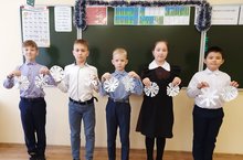 Сегодня учащиеся начальных классов вырезали снежинки. Был объявлен конкурс на самую лучшую снежинку.