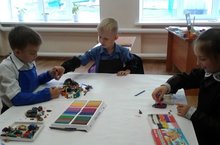 На уроке технологии учащиеся начальных классов сделали макет городской улицы и подарили воспитанникам детского сада.