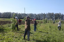 Коллектив учителей школы провел очистку лесопосадки вдоль дороги.