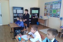 Башлангычлар "Азбука безопасности на дороге" исемле фильм карадылар. Юл кагыйдәләрен искә төшерделәр, транспорт төрләрен кабатладылар.