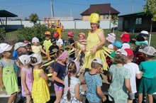 "Солнце, воздух и вода - наши лучшие друзья!" - под таким девизом прошло мероприятие для детей средних групп (воспитатели Гибадуллина Г. А., Фаррахова Р. Г.) К детям приходили герои Солнце и Тучка, вместе играли в различные подвижные и весёлые игры!