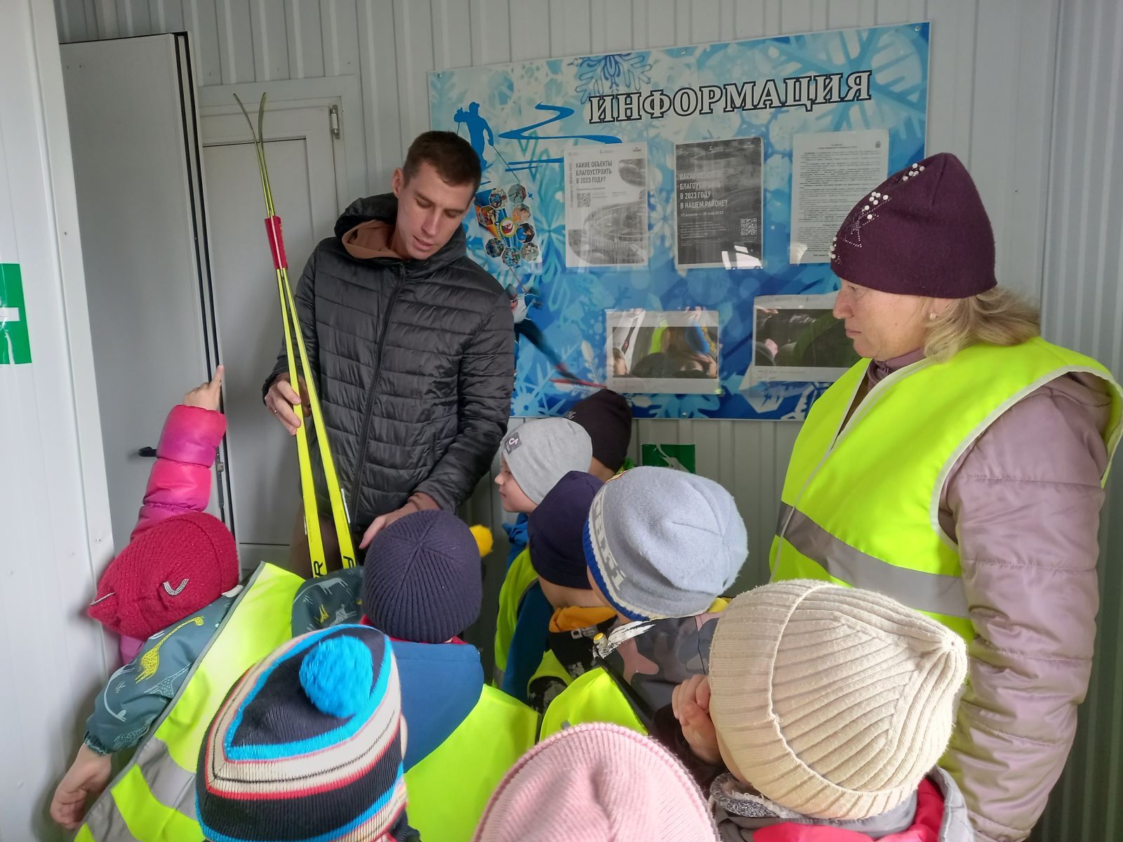 Экскурсии – один из основных видов организованной образовательной деятельности, особая форма организации работы по ознакомлению детей с окружающим миром. Воспитатель подготовительной группы Шарипова А. С. провела экскурсию на "Лыжную базу", где дети познакомились с профессией тренера по лыжным гонкам. Мастер спорта, тренер по лыжным гонкам Лаврентьев А. А. провел экскурсию по лыжной базе, познакомил детей с работой тренера, провел с детьми разминку. Дети получили новые знания и впечатления, экскурсия стала для ребят ярким и запоминающимся событием.