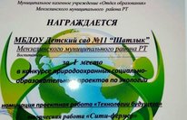 МБДОУ#11" Шатлык" (воспитатель Гурьянова Е. П.) занял 1 место в конкурсе природоохранных социально- образовательных проектов по экологии