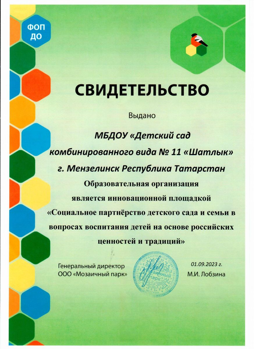 Муниципальное бюджетное дошкольное образовательное учреждение «Детский сад комбинированного вида №11 «Шатлык» Мензелинского муниципального района Республики Татарстан/Татарстан Республикасы Минзәлә муниципаль районы 11 нче номерлы катнаш төрдәге “Шатлык” балалар бакчасы мәктәпкәчә белем бирү муниципаль бюджет учреждениесе