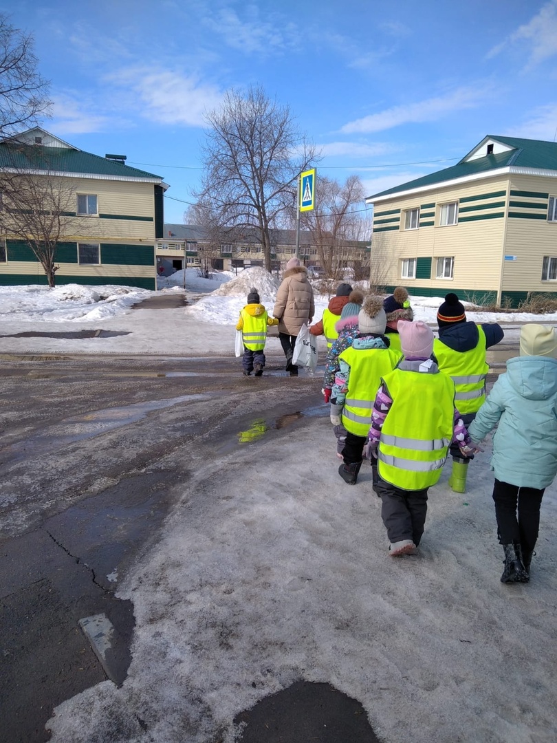 Дети старшей группы детского сада " Нефтяник " ходили на экскурсию, в ходе которой закрепили знания о правилах дорожного движения, пересечения дороги по не регулируемому пешеходному переходу, а так же правила поведения рядом с проезжей частью.