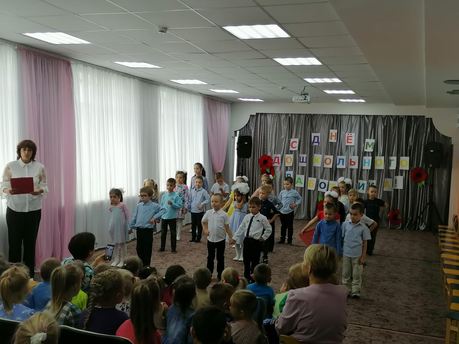 В нашем детском саду стало традицией праздновать «День дошкольного работника», прошёл праздничный концерт, на котором дети поздравляли коллектив нашего детского сада. Много тёплых слов благодарности прозвучало в этот день. Дети с удовольствием читали стихи, пели песни, танцевали, дарили свои солнечные улыбки любимым педагогам. Теплая душевная атмосфера присутствовало в зале на протяжении всего праздника.