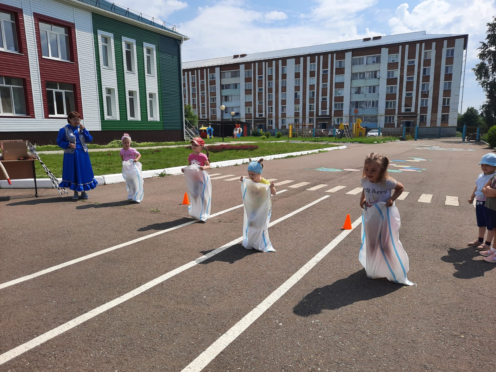 Сегодня прошёл праздник посвящённый "Дню защиты детей". В гости к детям приходили Карлсон и Клоун Клёпа. Вместе с детьми они играли, пели песни, отгадывали загадки, танцевали. Праздник прошёл задорно и весело. В конце дети рисовали свои впечатления на асфальте.