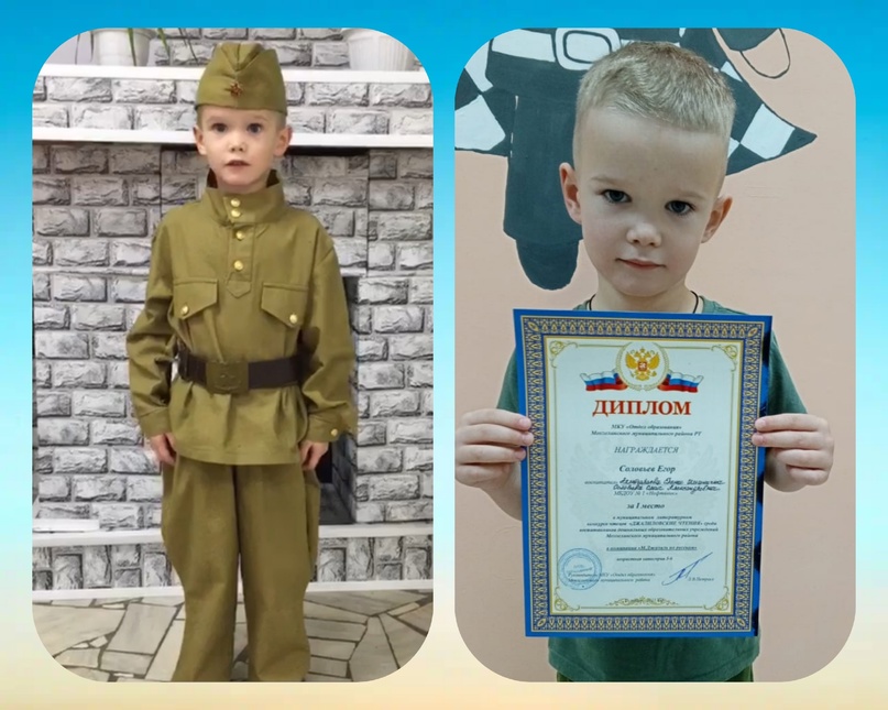 Поздравляем Юдину Еву,воспитанницу подготовительной группы,занявшую 2место, Соловьева Егора, воспитанника старшей группы , занявший 1 место в муниципальном литературном конкурсе чтецов "Джалиловские чтения" среди воспитанников дошкольных образовательных учреждений Мензелинского муниципального района. Молодцы!