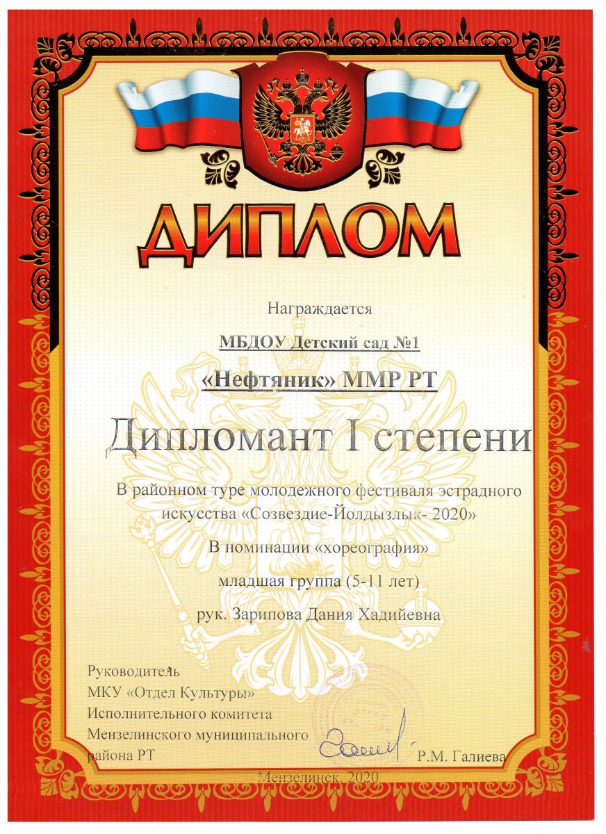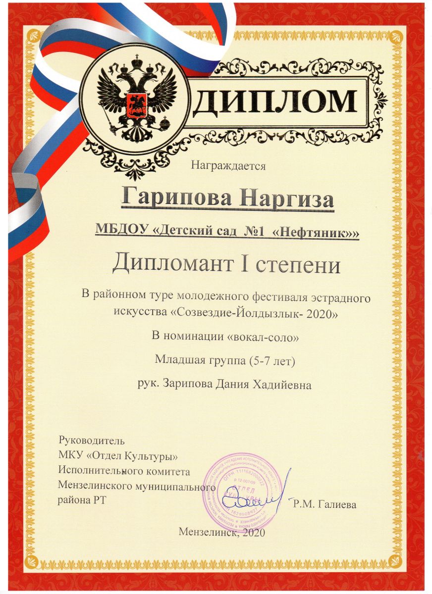 Сегодня в районном дворце культуры прошел гала - концерт отборочного тура районного молодежного фестиваля эстрадного искусства "Созвездие-Йолдызлык - 2020". Наши воспитанники принимали участие и стали призерами. Гарипова Наргиза (рук. Зарипова Д.Х.) стала дипломантом I степени в номинации "Вокал-соло", и танцевальный ансамбль "Звездочки"(рук. Зарипова Д.Х.) стали дипломантами I степени в номинации "Хореография". Молодцы поздравляем!