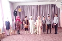 Ученики 2 "Г" класса МБОУ "СОШ №3" (руководитель Шайхутдинова А.С. преподаватель родного языка) посетили наш детский сад. Перед детьми они поставили сказку "Кәҗә белән сарык".