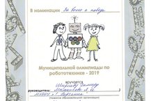 Сегодня в ГАПОУ "Мензелинском педагогическом колледже им. М.Джалиля" прошла олимпиада по робототехнике - 2019, в которой наш воспитанник Шириев Дамир (воспитатель Мыльникова Л.И.) принимал участие и стал лучшим в номинации "За волю к победе".