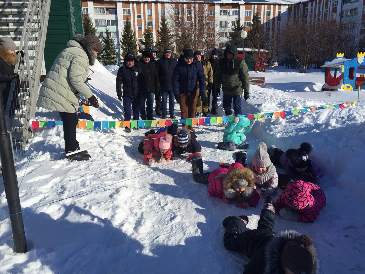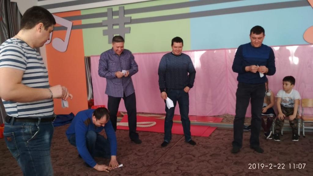 Воспитатели Муртазина Д.И. и Мыльникова Л.И. провели мероприятие "Мой папа тоже был солдатом". Весело и задорно прошел праздник, посвященный 23 февраля. Дети показали сценку "Илья Муромец", соревновались в командах вместе с папами.