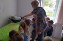 В прачечной после осмотра детьми помещения и знакомства с мастером по стирке белья Натальей Николаевной, которая предложила детям послушать ее рассказ, сопровождаемый показом действий: белье замачивается, загружается в стиральную машину, засыпается порошок, воспитанники наблюдали за работой стиральной машины. Затем показала, как сушат и гладят бельё.