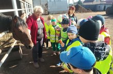 Дети подготовительной группы " Фиксики"были на экскурсии в госконюшне. Целью экскурсии было развитие познавательной активности и воспитания бережного отношения к животным. Ребята побывали на выгонах для лошадей, и узнали, что за лошадьми ухаживают конюхи: кормят их по режиму и чистят денники. Детям там разрешили покормить лошадей и жеребят сахаром, морковью и яблоками. Дети получили очень много положительных эмоций. -