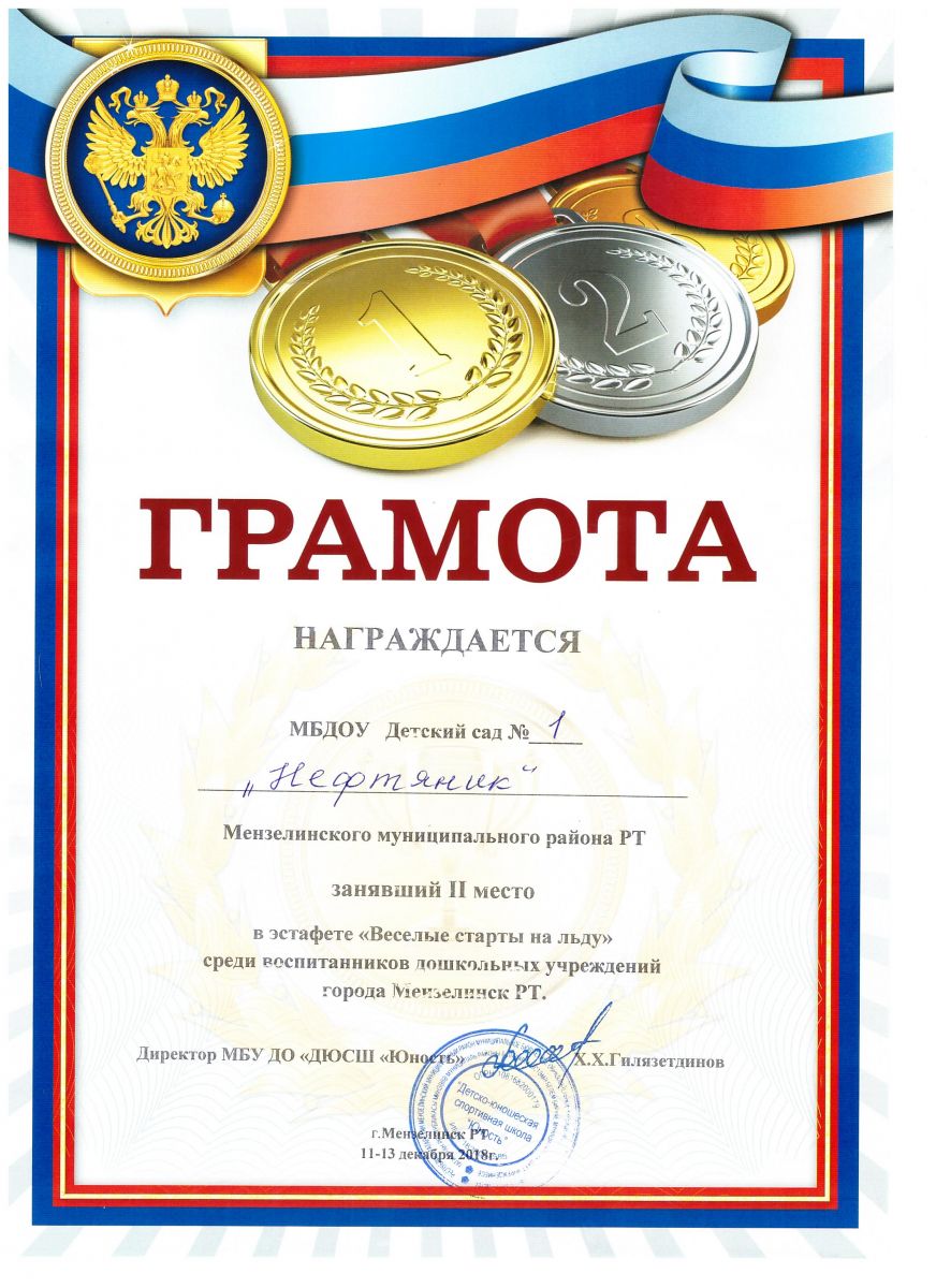 Грамота 2 место район.конкурс "Мама, папа, я - спортивная семья"