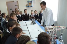 В Доме детского творчества прошла встреча с Заместителем Председателя Государственного Совета Республики Татарстан, руководителем Объединения женщин-депутатов "Мэрхэмэт - Милосердие" Ларионовой Татьяной Петровной в рамках Республиканского проекта "Сможем вместе". В фойе учреждения была представлена выставка творческих работ воспитанников и педагогов ДДТ. Молодой специалист Гилазиев А.А. продемонстрировал роботов конструированием которых занимаются дети на занятии технического кружка.
