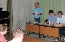 Совещание по патриотическому воспитанию 17.04.2014 Сегодня на базе Дома детского творчества прошло совещание по патриотическому воспитанию учащихся в Мензелинском муниципальном районе под руководством председателя Совета ветеранов ВОВ, для заместителей директоров по воспитательной работе и учителей по ОБЖ общеобразовательных учреждений с приглашением ветеранов ВОВ. Были подготовлены книжная выставка, презентации. На совещании выступили директор краеведческого музея Карамова Л.А., завуч по воспитательной работе СОШ № 2 Попова Е.С. Председателем Совета ветеранов Петровым П.Г.были поставлены задачи по патриотическому воспитанию в районе. Были рассмотрены вопросы по подготовке к 70-й годовщине Великой Победы.