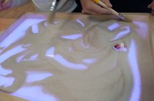 Занятие творческого объединения «Песочное волшебство», прошло на базе СОШ №3 с целью закрепления навыков техники рисования песком, по теме: «Засыпание». Ребята создавали осеннюю анимацию.