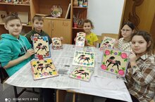 Воспитанники Дома Детского творчества на базе МБОУ " Николаевская ООШ имени С.А.Кузнецова" кружка "Рукоделочка" за творческим процессом изготовления игольницы из фетра.