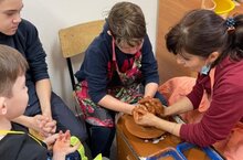 В рамках проекта "Путь к совершенству безграничен", педагог дополнительного образования Гилязетдинова Ольга Анатольевна проводит занятия по лепке из глины и обучает основам работы на гончарном круге.