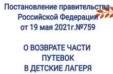 Постановление правительства РФ от 19 мая 2021г.№759 Об утверждении Правил предоставления в 2021 году из федеральногт бюджета субсидии акционерному обществу "Национальная система платежных карт" на реализацию программы поддержки доступных внутренних туртстских поездок в организации отдыха детей и их оздоровления через возмещение части стоимости оплаченной туристской услуги.