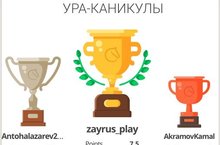 Воспитанники педагога ДДТ по шахматам Назимы Наиловны в шахматном турнире для мензелинских школьников "Ура Каникулы" заняли все три призовых места! Играли в рапид 10+5. Победу одержал чемпион района 2020 г. среди школьников Зайнуллин Руслан (ДДТ, СОШ №3), 2-е место: Лазарев Антон (ДДТ, №3), 3-е место: Акрамов Камаль (ДДТ, СОШ №3)