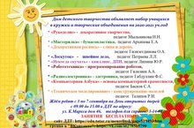 Вот и заканчивается пора каникул - пора отдыха, праздника, новых встреч и путешествий, ребята собираются в школу, готовятся и волнуются вместе с родителями. Главным становится вопрос, как распределить время ребёнка, как сделать его жизнь насыщенной и интересной. Помочь ребёнку найти себя, выбрать дело по душе и раскрыть свои творческие способности всегда помогали ребятам в Доме детского творчества. И по замечательной традиции ДДТ широко распахнёт свои двери для всех желающих в Дни открытых дверей с 3 по 7 сентября. С 09.00 до 15.00 все желающие могут познакомиться с работой кружков и секций, пообщаться с педагогами, записаться в понравившийся кружок. В Доме Детского Творчества будут работать разнообразные кружки, цель которых творчески, эстетически, эмоционально обогатить ребенка, помочь ему раскрыть свои способности, получить основные представления и навыки в различных видах деятельности. Это такие объединения, как «Рукоделие», «Мастерилка», «Некогда скучать», «Лоскуток», «Декоративная роспись», «Техническое моделирование», «Радиоэлектроника», «Робототехника», «Компьютерная Азбука». Ребята научатся рисовать, лепить, танцевать, петь, заниматься техническим творчеством, программировать роботов и т.д. В Доме детского творчества работают творческие педагоги, смело ищущие новые формы работы, создавая авторские образовательные программы. Они - настоящие мастера своего дела. Всех их объединяет желание подарить детям радость общения, помочь раскрыть свои творческие способности, приобрести уверенность в себе. Уважаемые родители, предложите своим детям дополнительные занятия, где они смогут не только провести время с пользой, но и найти новых друзей!