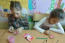В первые дни каникул ребята городских школ спешат в Дом детского творчества. Сегодня их встретила первой педагог по декоративной росписи Ольга Анатольевна и провела для ребят мастер-класс "Пейзаж на спилах".