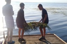Ребята нашего лагеря тоже организовали патриотическую акцию "Венок памяти". Вместе с вожатыми организовали живой коридор до самой реки и спустили венок на воду. Так дети и взрослые почтили память жертв фашизма.