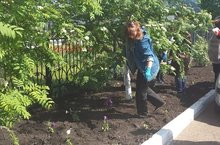 Сотрудники Дома детского творчества сегодня высадили цветы на территории учреждения.