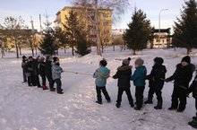 Для учащихся 1 классов школы № 1, в Парке Победы педагоги ДДТ провели игровую прогроамму "Зимние забавы".