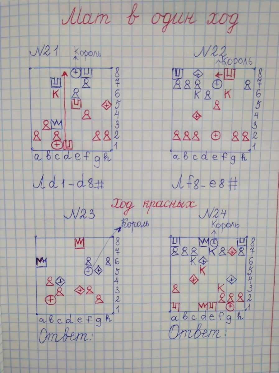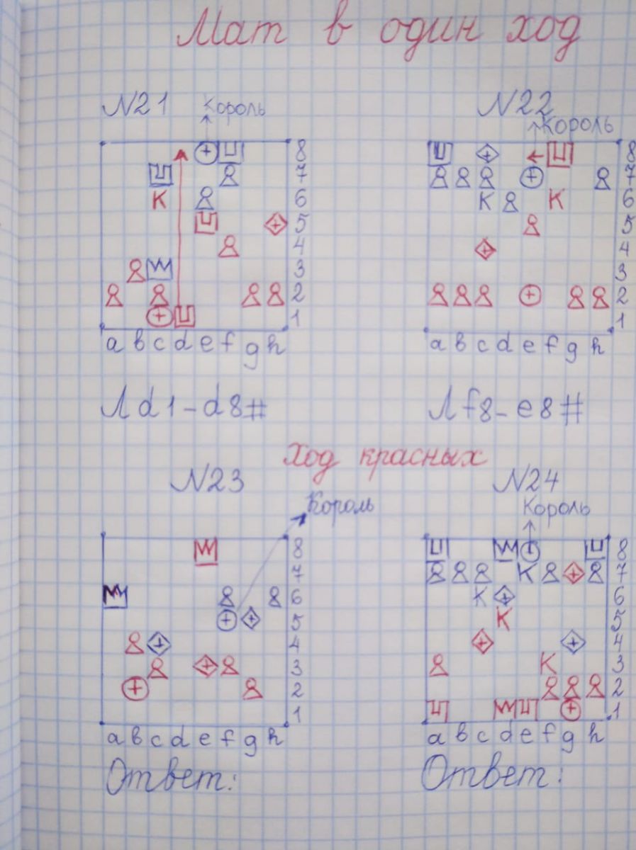 Мат в 1 ход. № 23,24. Записать ход фигуры и указать стрелкой.