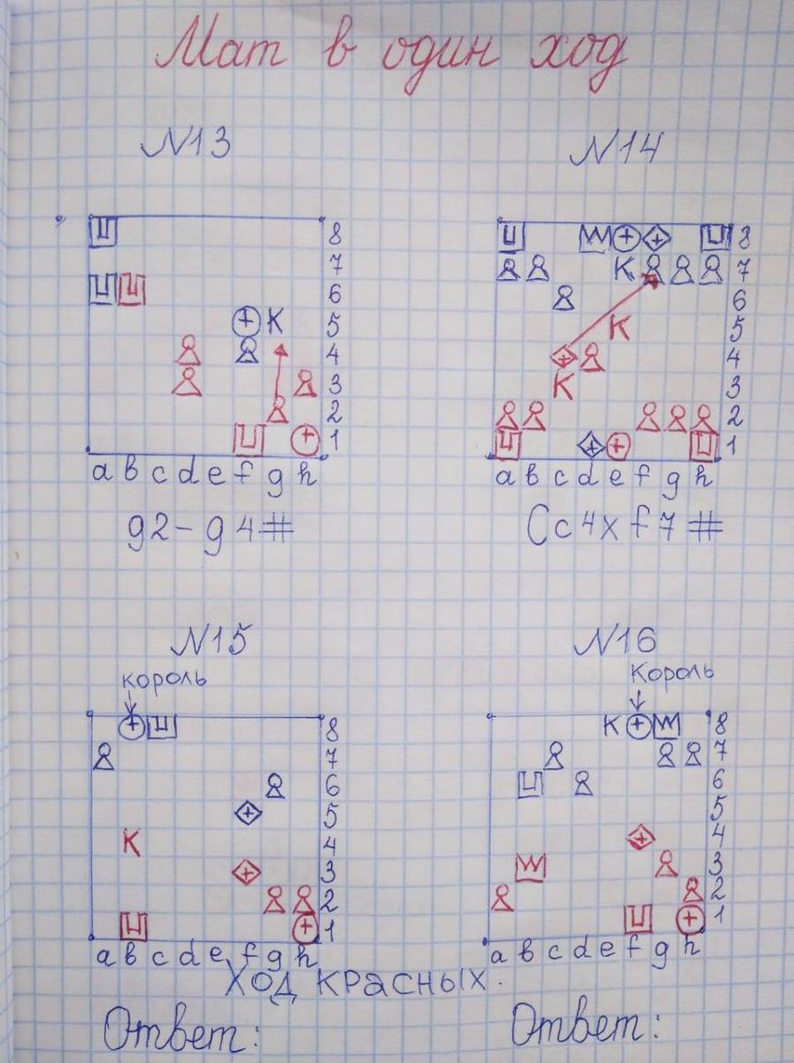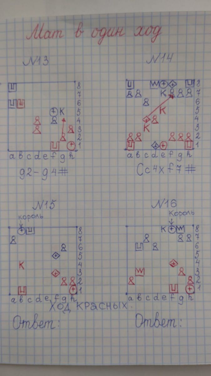 Поставить мат белому(синему) королю. Указать стрелкой и в ответе указать ход фигуры. Номера 13,24, образец. Для выполнения 15.16.