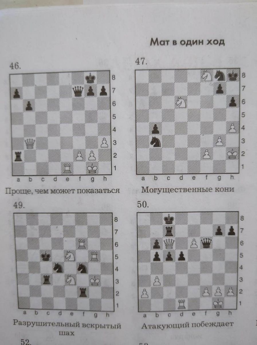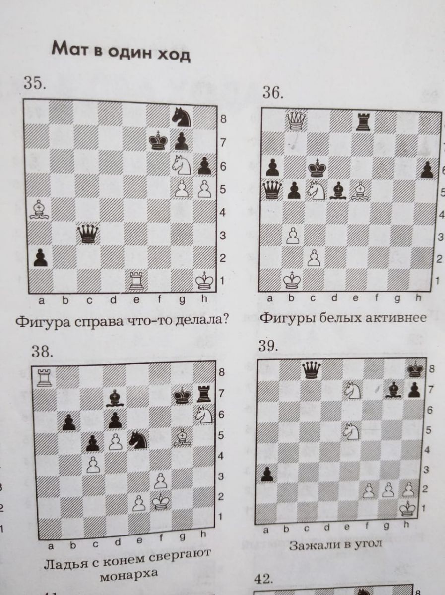 Разобрать партию на шахматной доске. Ход белых. Поставить мат в 1 ход в номерах 23,24.