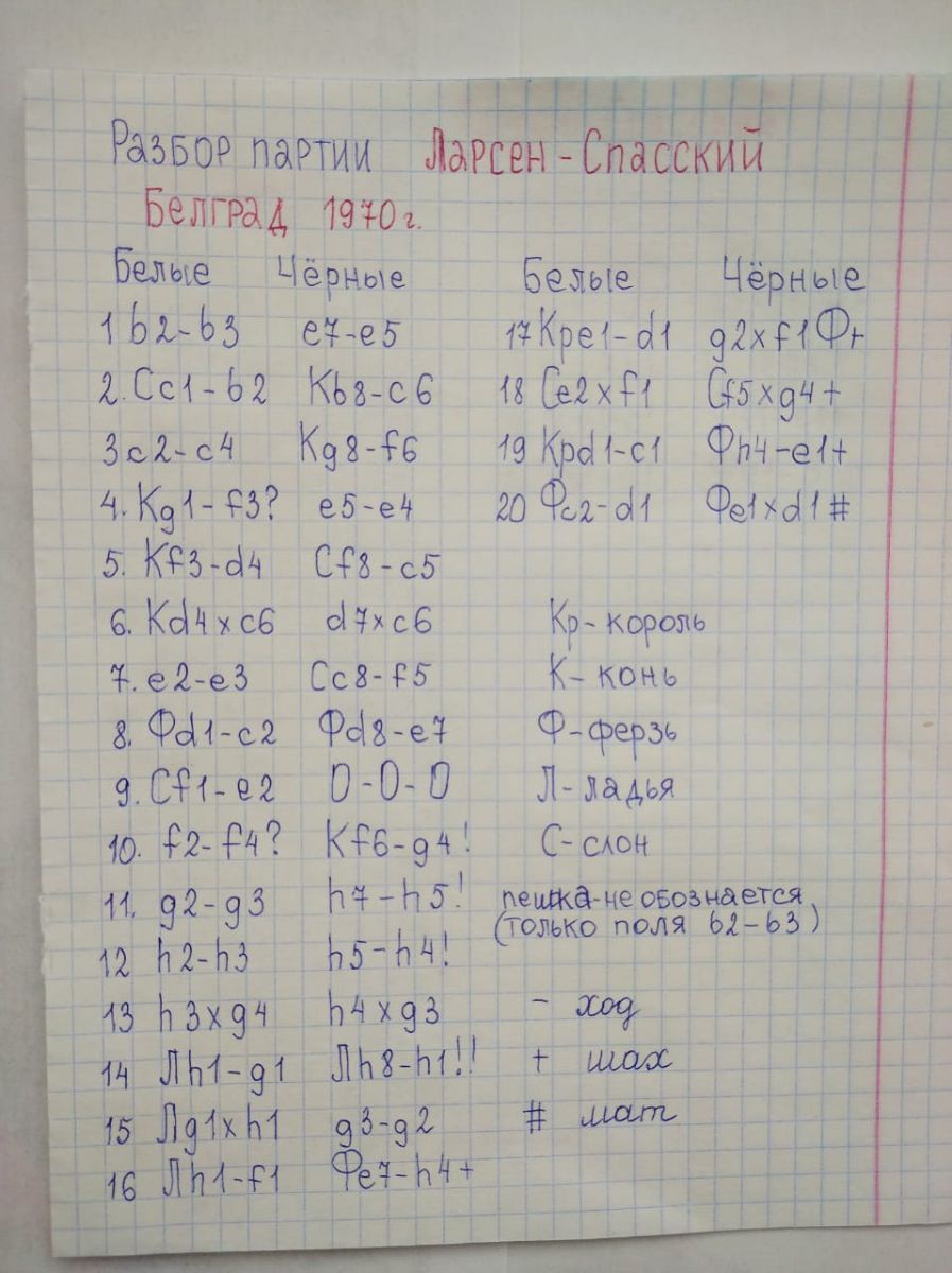Партия Ларсен Спасский Бемрад. Разобрать партию на шахматной доске.